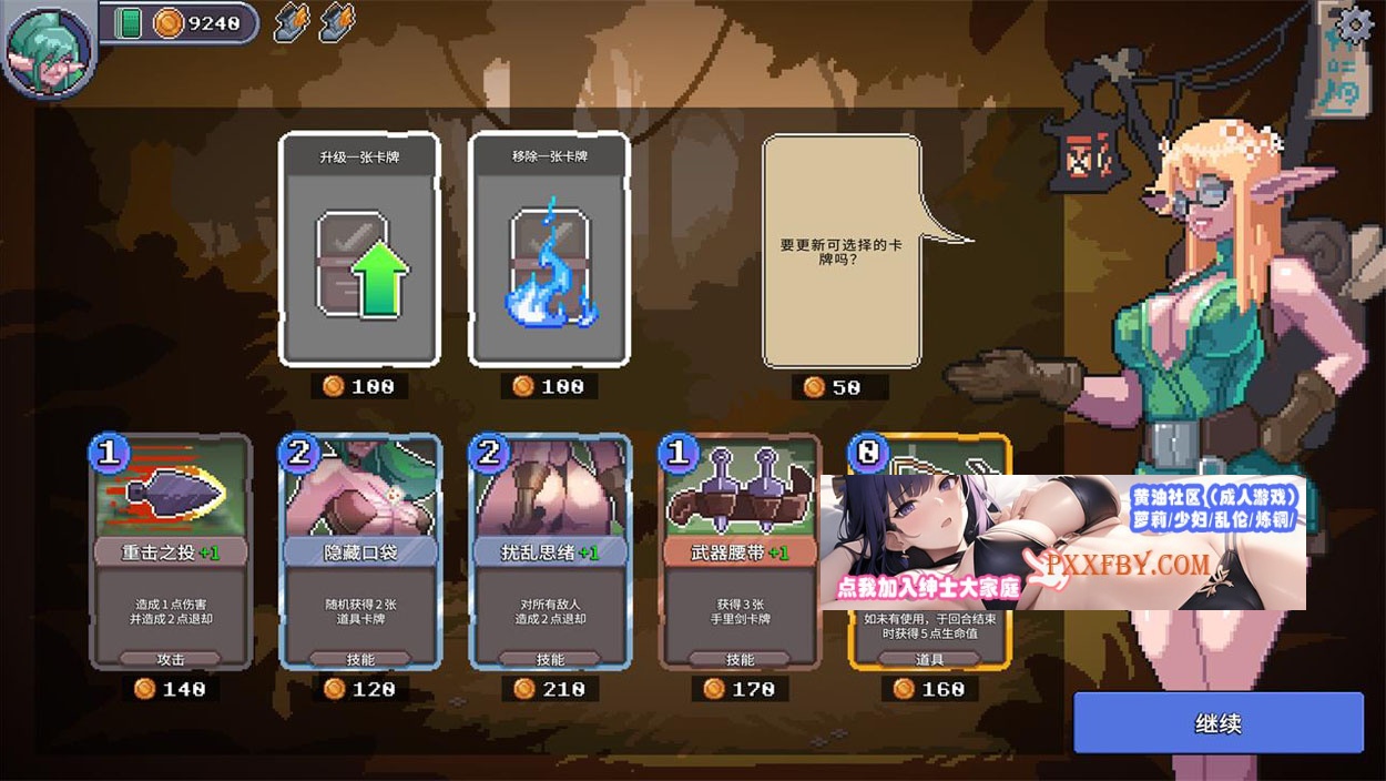 透过选择、升级和移除来建立并管理你的卡牌组合。