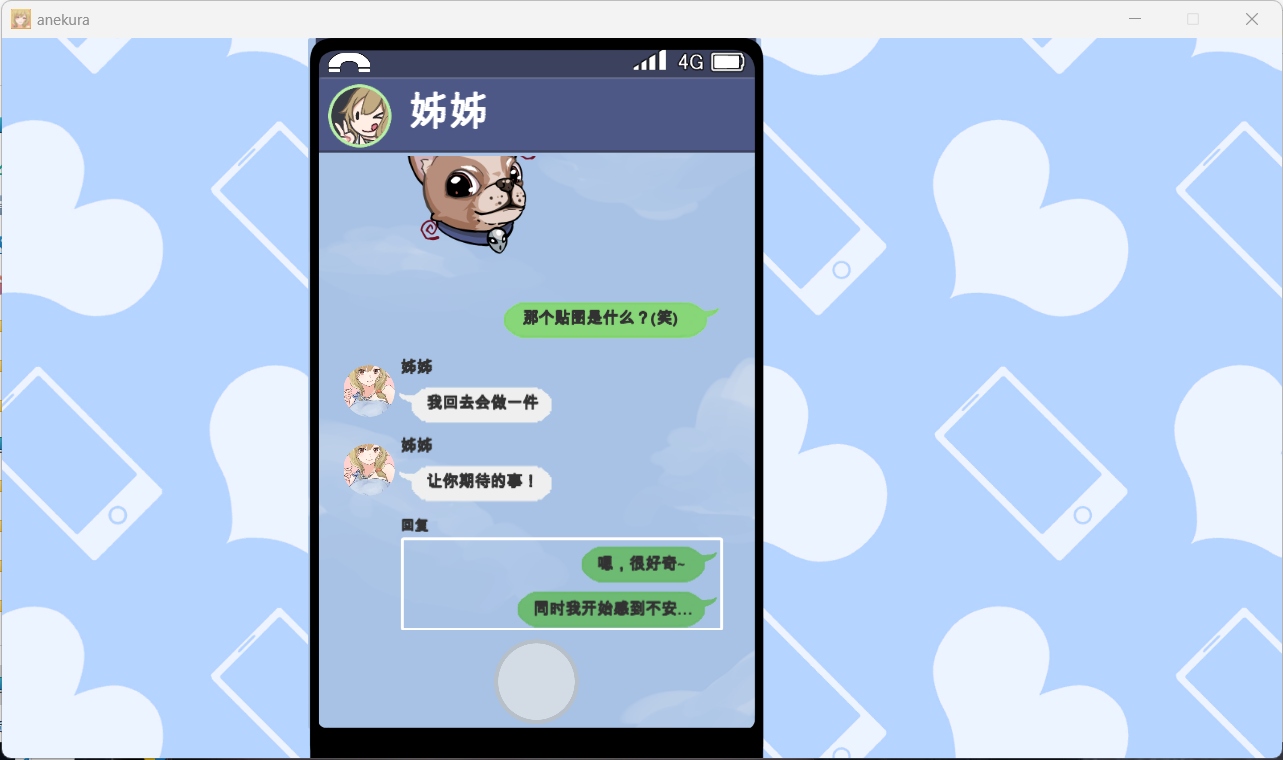 为了维持生计主角每日都会前往工作场所打工赚钱,而工作的休息时间会收到姊姊传送来的手机讯息,根据选择不同的回应将会影响到与姊姊的好感度。